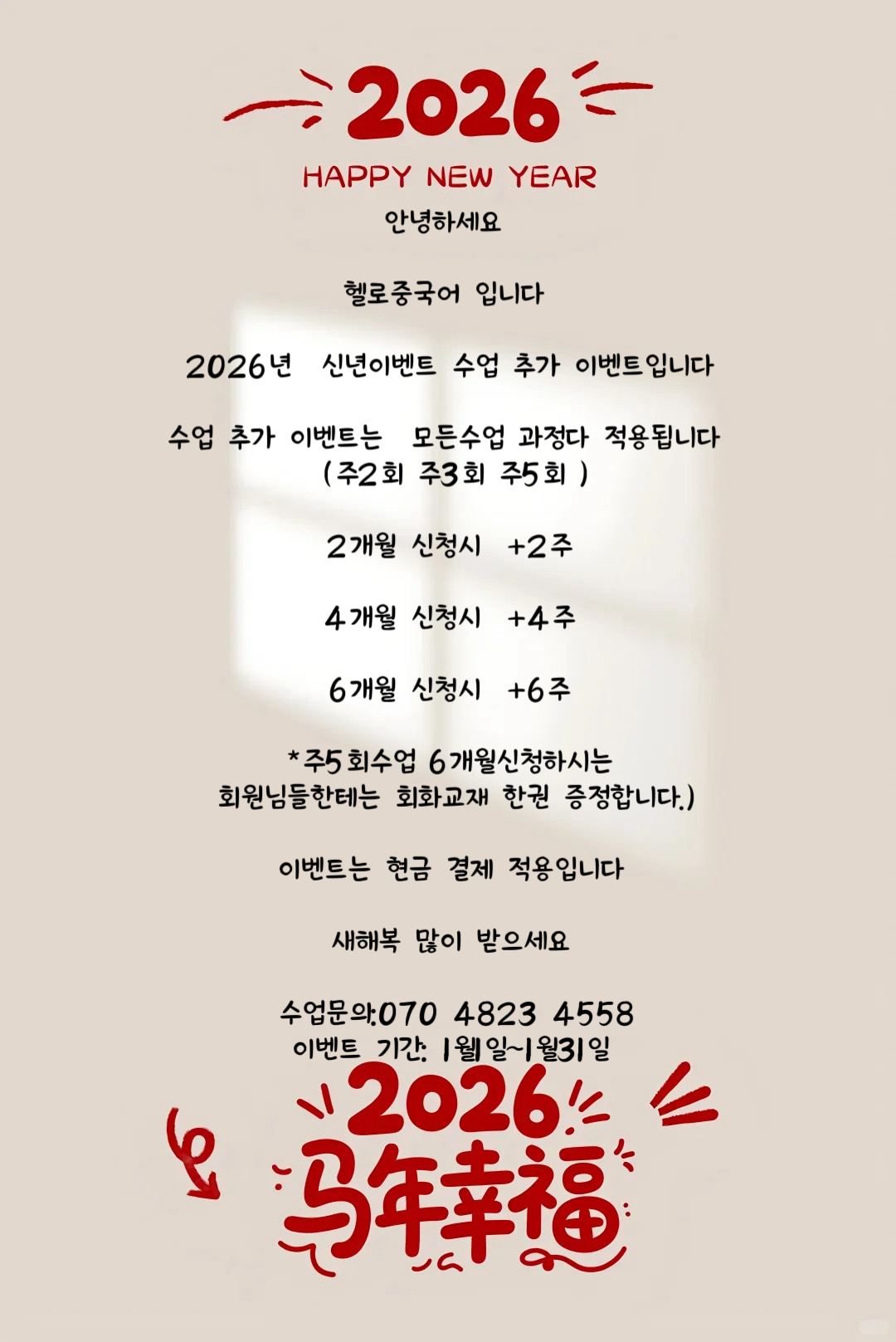 헬로중국어 26년 원단 이벤트진행합니다