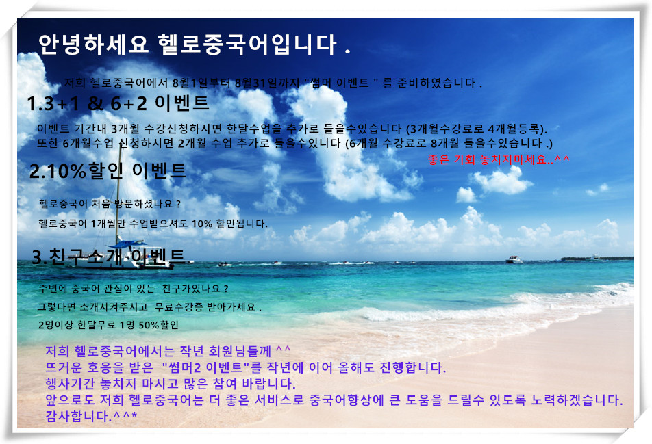 헬로중국어 8월 "썸머 이벤트2 " 진행중